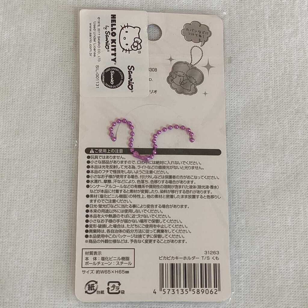 Esse chaveiro dos gêmeozinhos Little Twin Stars foi fabricado em 2020 no Japão & vendido pela Daiso no Brasil em 2021. Possui cordão de aço inox & seu pingente reflete quando bate luz. Ele está lacrado & nunca foi aberto.