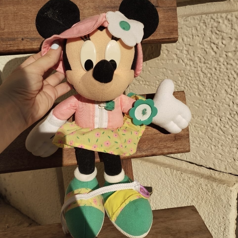 Essa Minnie lançada pela Arcotoys fez parte de uma coleção "Learn to Dress Me" (Aprenda a Me Vestir), feita para ensinar crianças a como se vestirem sozinhas. Por isso possui relógio removível, cardaços e zíper na blusa!